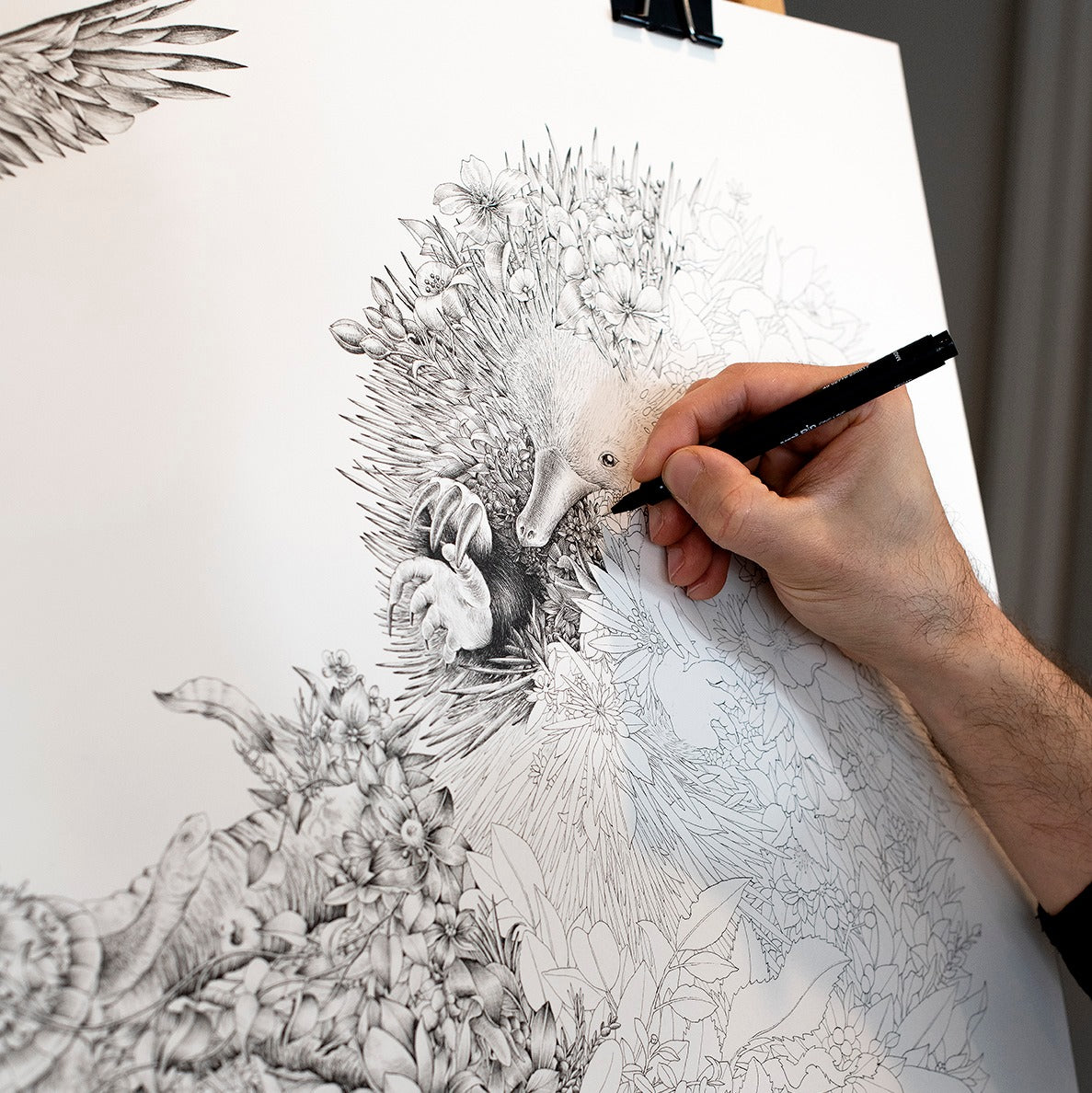 Nathan has a passion for not only art and wildlife, but for science and nature. Inspired by people like David Attenborough and characters from his favourite books, like Mowgli and Bagheera (The Jungle Book), Nathan is in constant pursuit to expand his knowledge about planet Earth and its connection to humans. Nathan draws using pen and ink on paper and digital methods for colour. The intricate illustrations intended to highlight both the beauty of the world's wildlife while educating and inspiring viewers to take action to help protect threatened species.