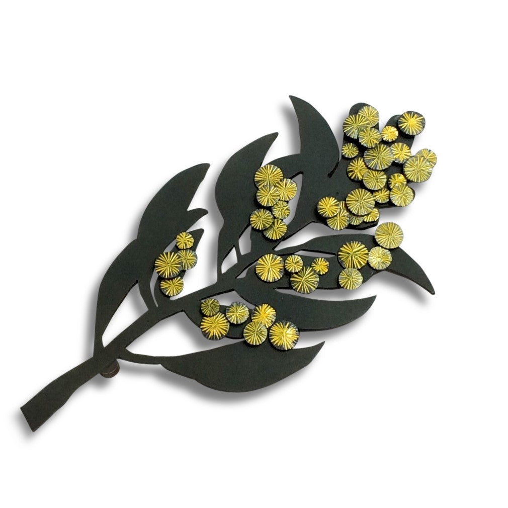 Made from mild steel and sterling silver her works are labour intensive, being cut by hand and textured using her own home-made chisel. They are further embellished using techniques such as sandblasting, oxidization, enameling and Keum-boo, an ancient Korean form of inlay gilding. Together these various processes give the work a subtlety of form, and a delicately irregular texture, that capture the unique aesthetic of the natural world.