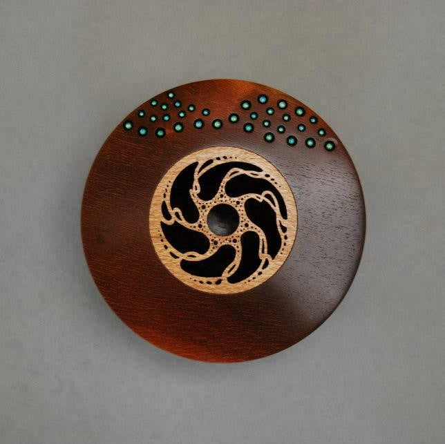 In 1995 Robert relocated to Mundijong a small town south of Perth in WA. Since this time, he has worked full time creating works in wood which he supplies to galleries around Australia. Rob’s practice as a craftsman revolves around woodturning enhanced with silver, copper & metallic leaf. Favouring the textures of Sheoak, Jarrah and Jacaranda, he finds that his objects progress mainly from a basic form or shape which evolves. Constantly revising, he finds that changes in perspective of the original form bring developments in the use of colour or decorative effect. Currently, his inspiration comes from the play of sunlight on water. Rob is driven by sculptural, rather than functional objects.