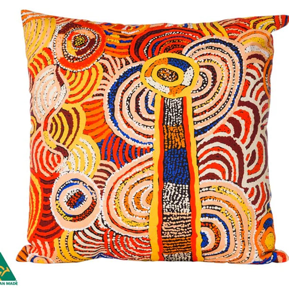 Australian Made Cotton Cushion Cover featuring licensed artwork by by Nora Davidson from Papulankutja Artists located at Blackstone, Western Australia.