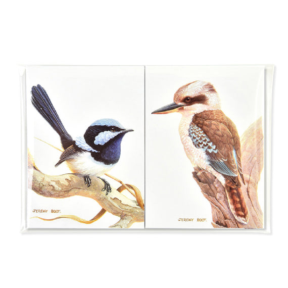 These superb quality purse pads feature blue wren and kookaburra artwork by Jeremy Boot.