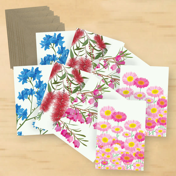 This notelet set featuring Australian flora contains eight notecards (two of each design) and eight envelopes.
