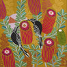 “While I have painted many Banksias before, what attracted me to paint this variety was the gorgeous pinky colour that some varieties of this plant come in. I love how Bankias come in all different shapes and colours and as the common name suggests – the leaves on this plant are somewhat shorter and appear to almost have been cut. I have also painted Wattlebirds before but I just love how their simple shapes and natural patterns make them so easy to translate into my characteristic style.” - Helen Ansell