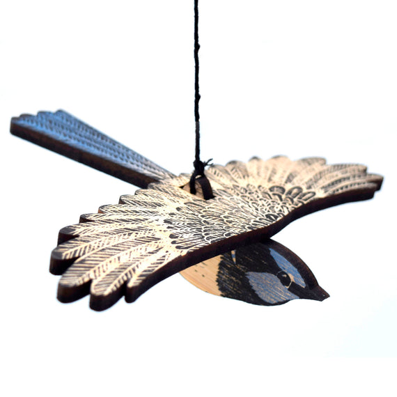 This is a mobile of a superb fairy-wren, or to be more precise a male superb fairy wren. It is made of strong, laser cut, layered plywood and hand-printed in multiple layers from hand-cut lino plates.
