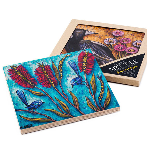 Zebra Finch at Kata Tjuta Timber Art Tile