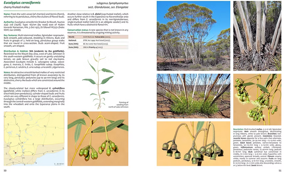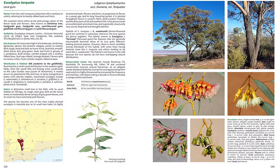 Of the 173 eucalypts, 158 are described in detail over a double page, featuring: