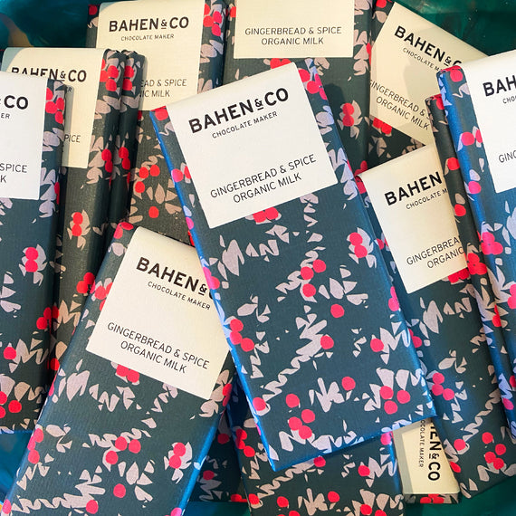 Ingredients: Cacao beans, organic raw sugar, organic milk, organic cacao butter, tapioca flour, chickpea flour, vegetable oil, golden syrup, treacle, ginger, spices, sodium bicarbonate, vegetable gum.