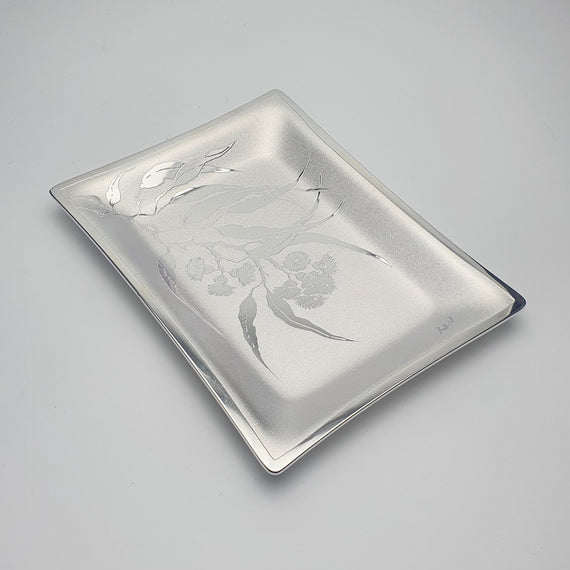This anodised aluminium truffle tray features a flowering gum pattern etched onto the surface, a hand-polished finish and an engraved signature.