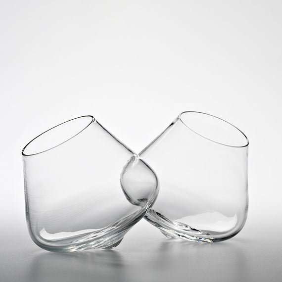 These revolving Kinetic Wine Glasses are functional, both as drinking vessels and as a decanters that aerates the wine as it revolves. These glasses were created out of a love of wine and the inspiration to create entertaining drinkware that complements the drink itself.