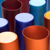 These beakers echo the curved lines of Fink and Co’s Water Jug and their tactile form fits comfortably in the hand. The complex shape demanded the development of a specialised pressing tool and each piece is hand-abraded and sandblasted before it is anodised.