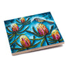 Emma Blyth art print on marine ply timber tile, featuring a red wattlebird amongst banksia.