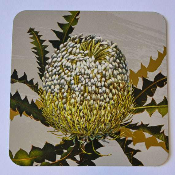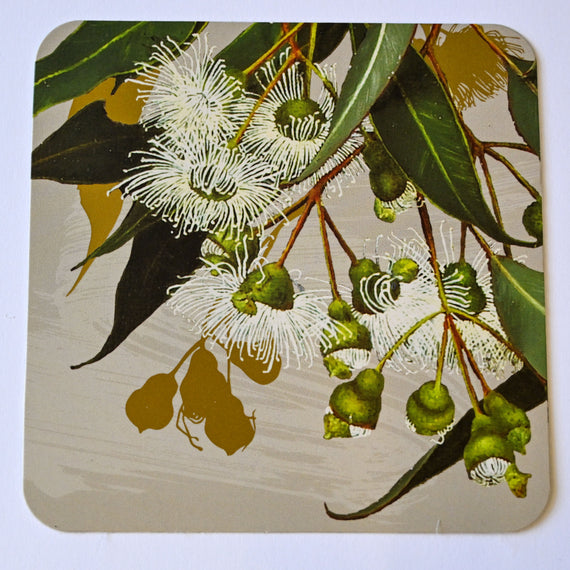The coasters feature White Native Wisteria, Showy Banksia, Common Clematis and Marri/Red Gum.