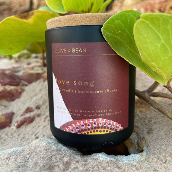 Watching the sun’s last rays kiss the coastal line, illuminating her magnificent colours across the distant sky and melting his Liyan (heart). Breath in Country and feel her love with fragrance notes of wild rosella, frankincense, rose petals, honey and coconut.