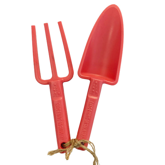The ultimate kids set, these tools are tough. 30% smaller than our full sized hand tools, the kids combo pack includes one Joey trowel and one Chicky fork hand tools.