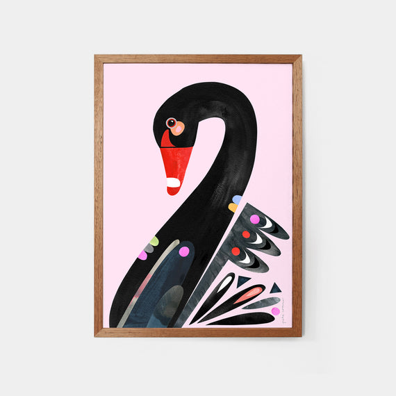 This is a fine art print from the original 'Black Swan' collage and acrylic artwork by Pete Cromer.