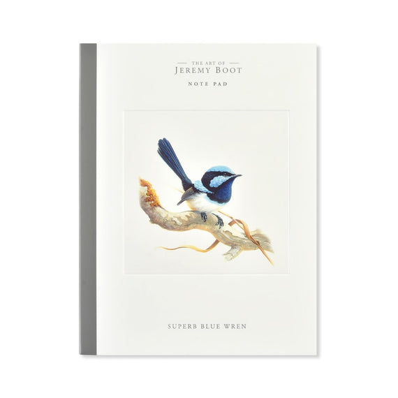 This superb quality notepad features blue wren artwork by Jeremy Boot.