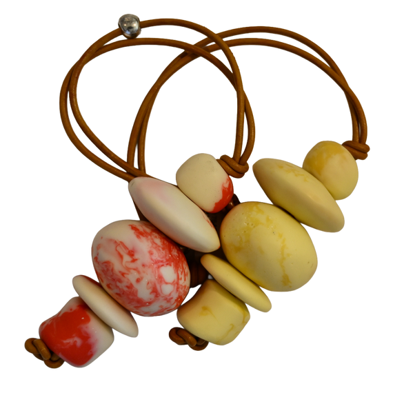 The stacked resin beads Splash Decoration are the focus of this leather accessory, best styled as a charm for added personalisation for an iconic and distinctive look.