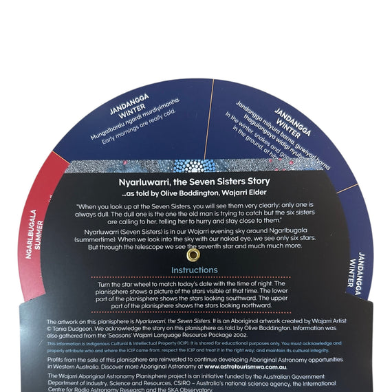 Wajarri Aboriginal Astronomy Planisphere - Discover the Wajarri Story of Nyarluwarri, the Seven Sisters.