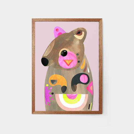 This is a fine art print from the original 'Quokka' collage and acrylic artwork by Pete Cromer.