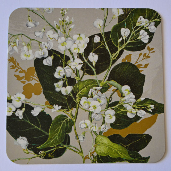 The coasters feature White Native Wisteria, Showy Banksia, Common Clematis and Marri/Red Gum.